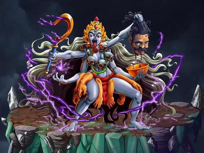 Deity Kali Mudra Chicago Kali Kali Yantra Kali Tattoo Kali Dark Kali Tattoo Kali on the Cover of TIME Kali in the Miriror Kali 420 Kali Modern Kali, Hindu goddess isolated on white, vector design